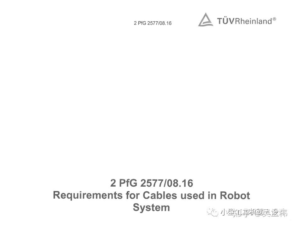 1、TUV莱茵制定的《PfG 2577/07.19 Requirements for Cables used in Robot System》,这是19年的2.0版本,更早的一版是2016年的版本。
