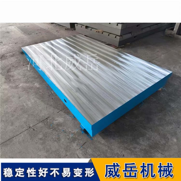 其二,低热膨胀特性防止热变形。平台主体选用低膨胀铸铁材质,添加镍、铬等合金元素优化成分,热膨胀系数控制在8-10×10??/℃,远低于普通铸铁。经高温时效+振动时效双重处理,残余应力去除率≥99%,搭配“箱型封闭框架+加密筋板”结构,在150℃高温辐射环境下,台面热变形量≤0.005mm/m,无塑性变形,确保热态测试中基准面平整稳定,避免因平台变形导致电机安装偏移。
