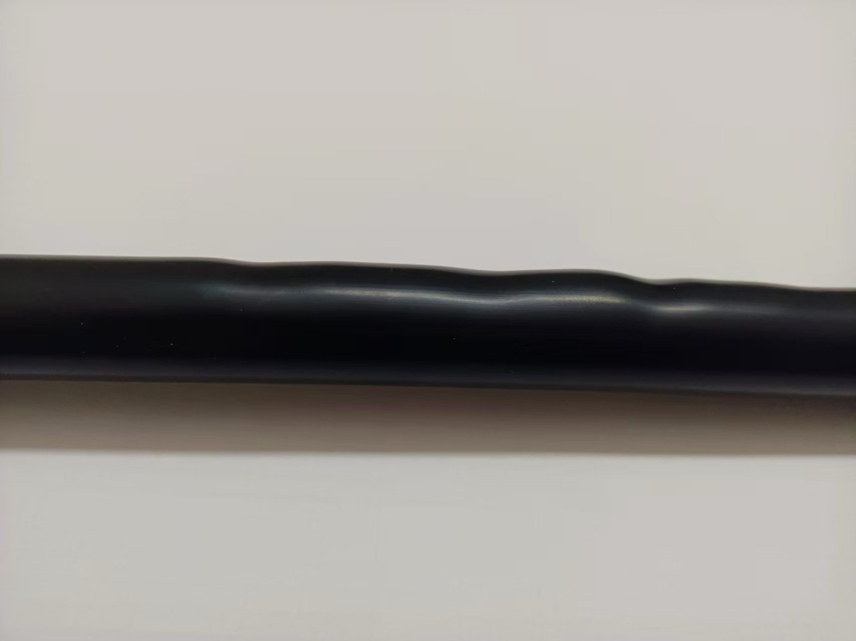 本人在试70平方异型导体8.7/15kV绝缘挤出时,遇到这样的问题,在调试时一切正常,当供氮加热正常生产时,出现如图所示的情况,后面将导体屏蔽加厚,由原来的0.85mm加到1.0mm后表面就正常了。导体外径为12.3mm,导体模芯为12.7mm,绝缘模芯为11.1mm。请各位行家发表下意见,学习学习。