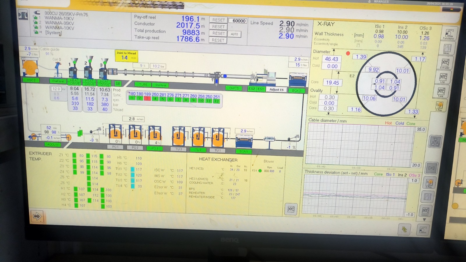 工艺速度本来在4.5米/分钟 , 因为外屏不均匀目前是降速到了2.9米/分钟