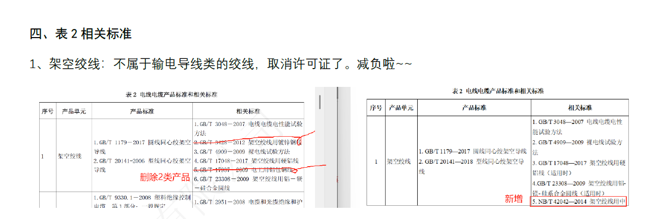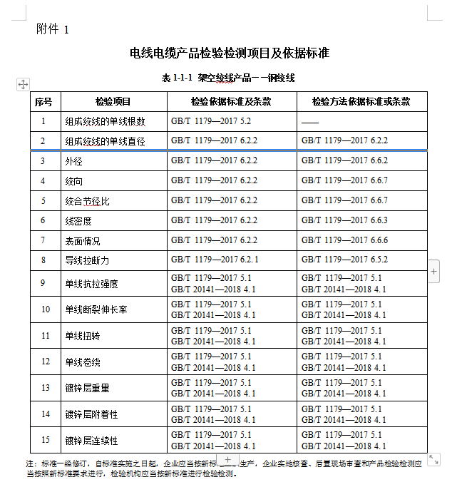 相关标准里面虽然少了2个标准,但并没有删除这两类产品,在附件1产品检验检测项目及依据标准里面仍有钢绞线和铝包钢绞线产品