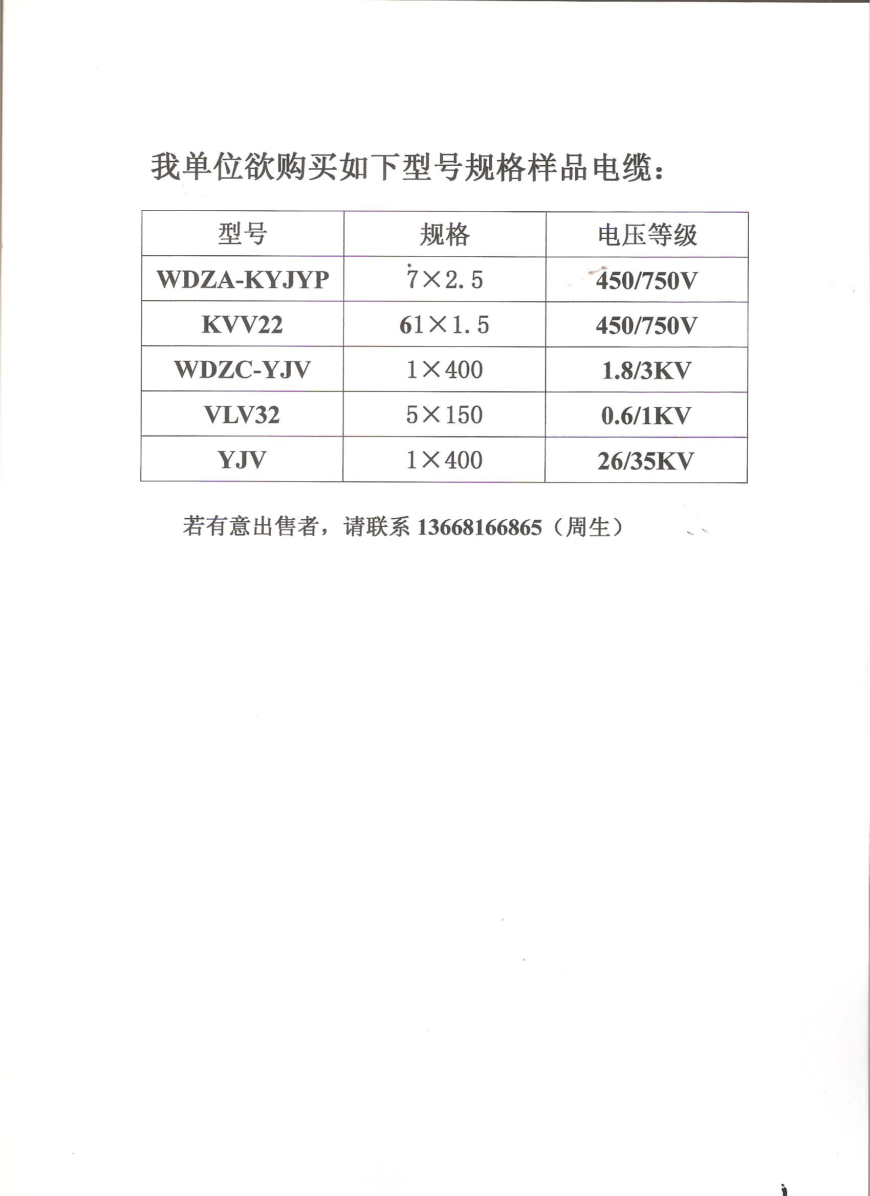 [寻求加工] 求购电缆样品线