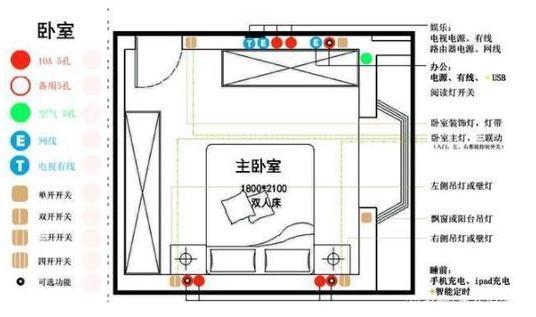除了考虑到平时的照明之外,还要考虑到睡眠时对于开关操作的便捷想,包括一些其他电器例如手机、笔记本、台灯等的使用需求。