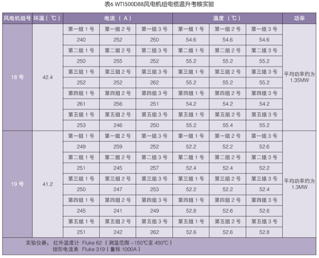 在某高原风电场,我们对南车风电的WT1500D88风电机组的定子电缆做了实际运行考核实验,实验数据见表6。