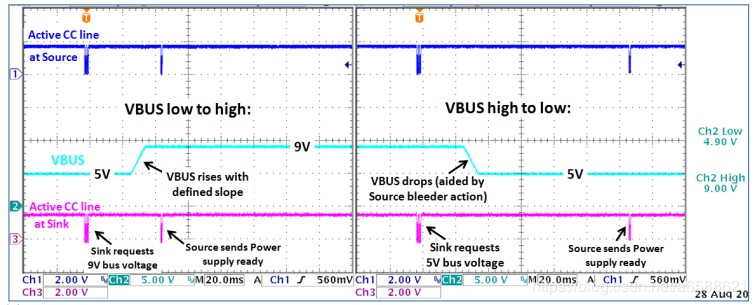需要注意的是,在电压下降期间,Source为了让电压快速降低,Source会打开放电电路,达到额定值之后,Source会等待一段时间,电压稳定之后再发出Ready信号给SINK。