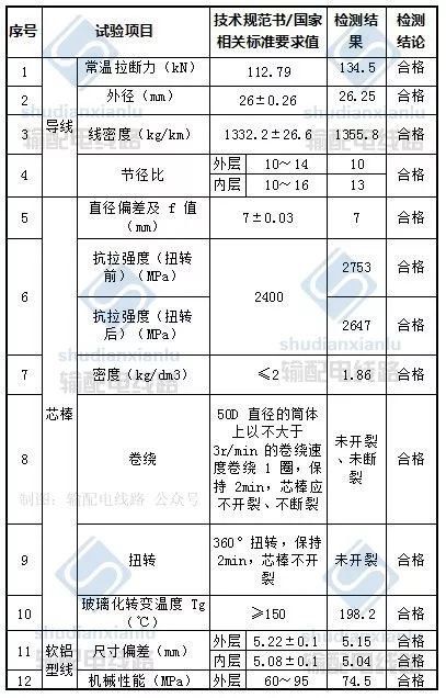 (1) 发生断线的碳纤维复合芯导线各项指标均符合国网公司招投标技术规范书和国家相关标准要求。