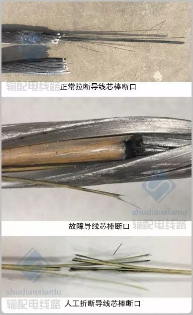 (2) 碳纤维导线断线的主要原因是内部芯棒已受损甚至断裂,在环境、应力等综合因素的长期作用下,强度逐步下降并最终导致断线。