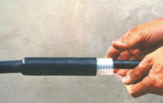 8、密封端口分别在收缩后各相冷缩管和冷缩指套的端口处包绕半导体自粘带。这样,既能使冷缩管外半导体层与电缆外半导体屏蔽层良好接触,又能起到轴向防水防潮的作用。