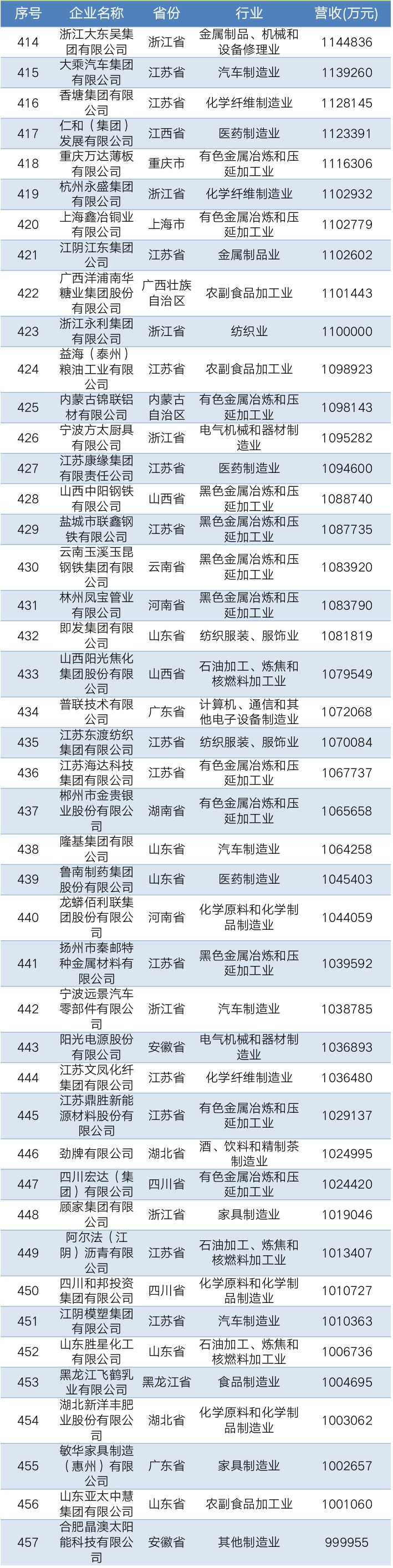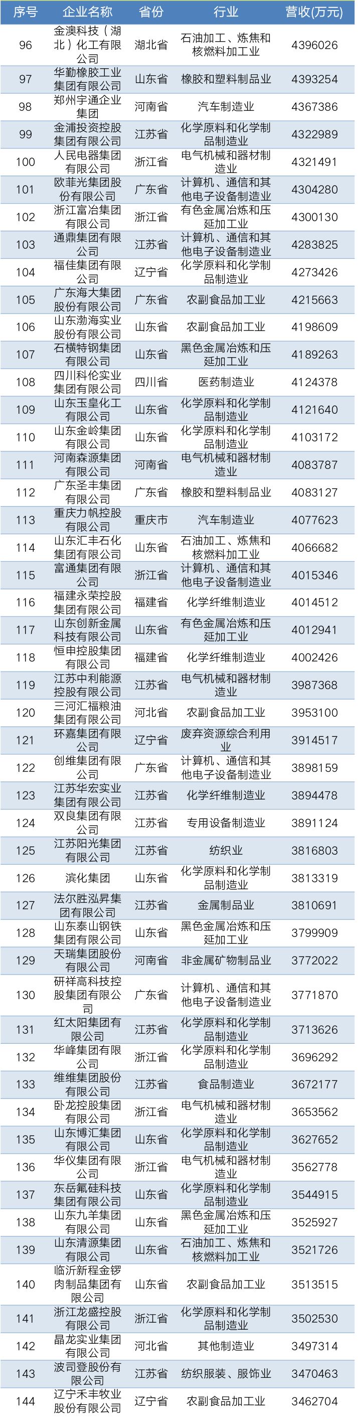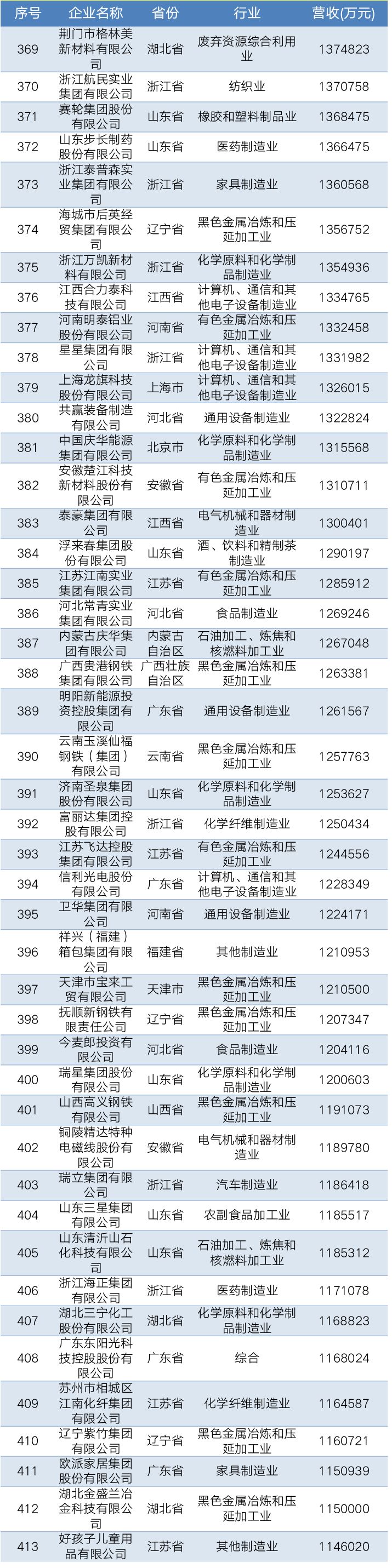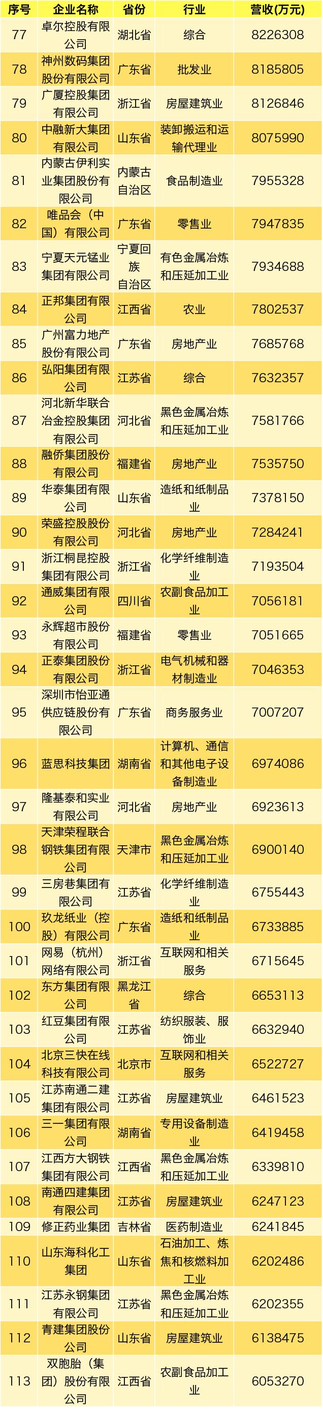 2019中国民营企业制造业500强