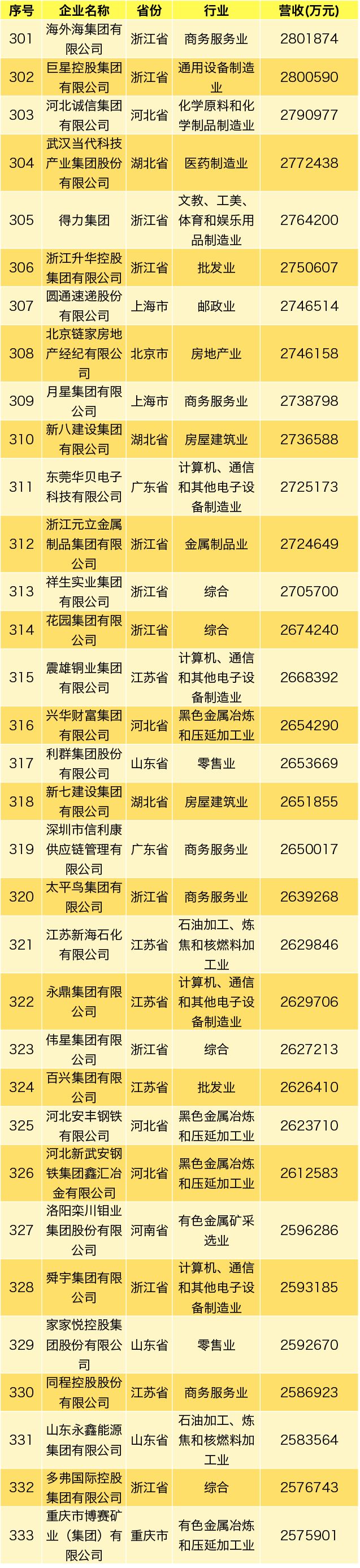 2019中国民营企业500强