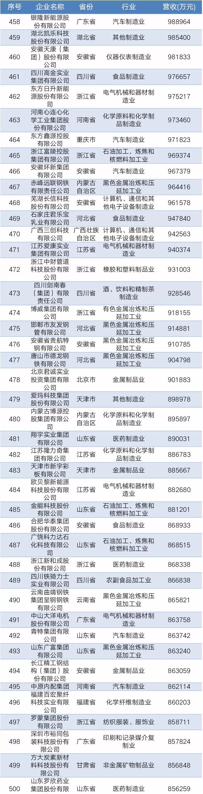 8月22日上午,全国工商联在青海西宁发布2019年”民营企业500强”暨”制造业500强”榜单。根据榜单显示,2019年中国民营企业500强入围门槛又创新高。