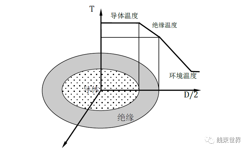 由于造成汽车电线的升温的热源是由导体产生的,所以绝缘的温度上升是由里 到外的(见图2)。当观察到发烟时,往往接近导体的部位已经超过绝缘材料允许的过载温度。这种情况对于小截面薄壁电线不太明显,上可以容忍,但对于大截面厚壁电线,特别是带护套带屏蔽的电缆,影响就比较大了,会产生过于乐观误导的结果。
