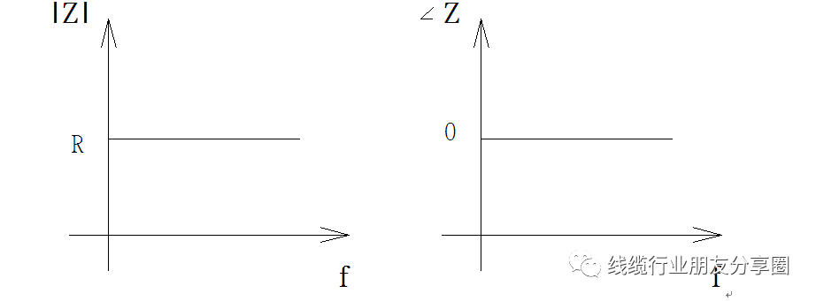 阻抗是固定的, 也就是电压与电流的比值, 就是电阻值R, 与频率无关.