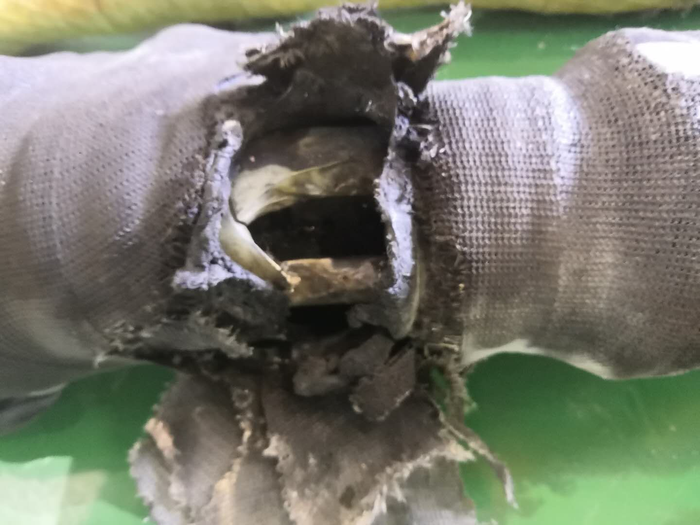 楼主是做电缆附件的,前段时间去武高所送检中间连接头型式试验,其他项目都过了,最后做动热稳定的时候,第一次过了,第二次产品穿了,如下图: