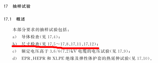 关于金属屏蔽尺寸的测量,是属于什么类型试验?我翻了半天也没有看到关于金属屏蔽尺寸测量的试验,只有10.1~10.2.3有一些数据要求,后面的抽样试验也只有17.11关于铜带屏蔽最小搭盖率的要求。对于铜带屏蔽厚度和铜丝屏蔽直径,例行试验、抽样试验和型式试验中都没有提及但是几乎所有的检验报告都有金属屏蔽的检测内容,有点小困惑。