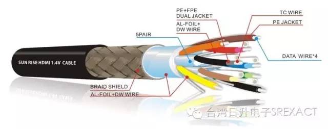如图是HDMI线材,当中有5对双绞线用于传输信号