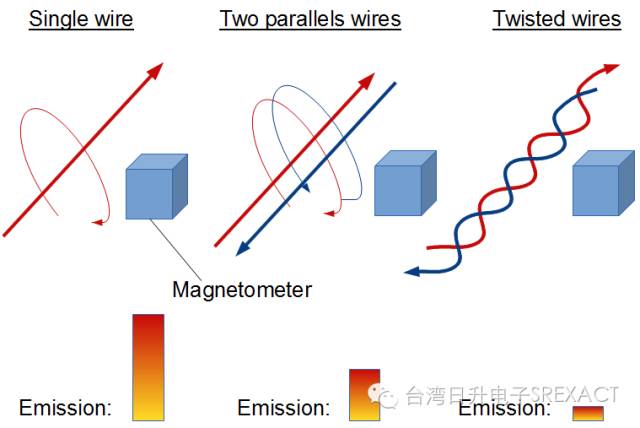 方块处为EMI侦测处,同样信号下,单根电流 /双向电流/对绞双向电流时,以对绞双向电流为最低!
