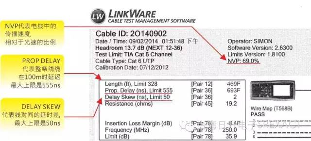 说明以太网络现在测是橘色线对向蓝色线对的近端串扰( (NEXT)与远程串扰(FEXT)值