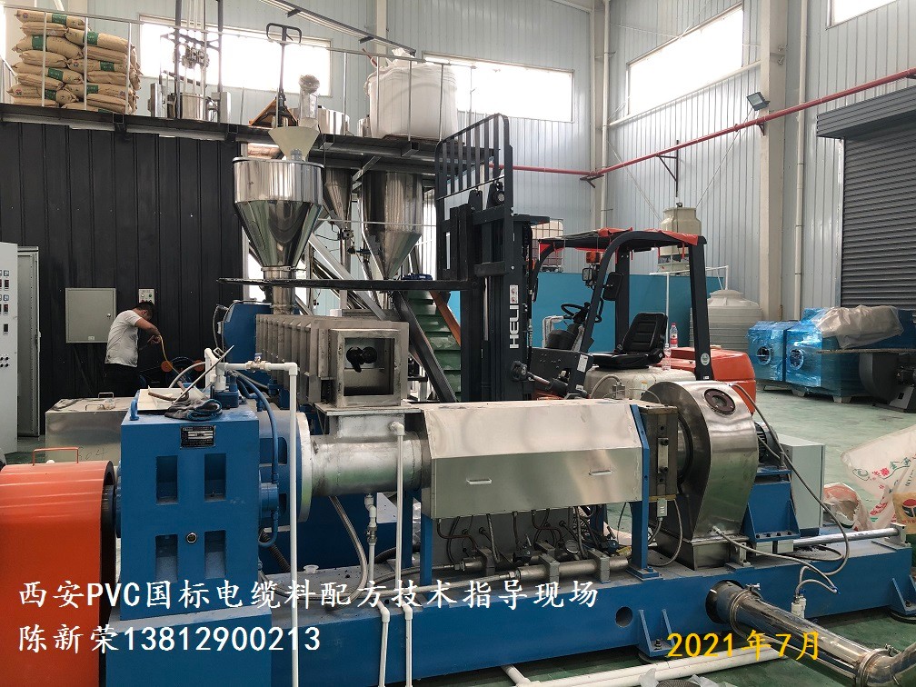 一百十七、2021年7月西安某公司请陈新荣工程师到厂现场指导生产PVC国标70度、90度电缆料国标全项包检配方。全新机器第一次试机生产,