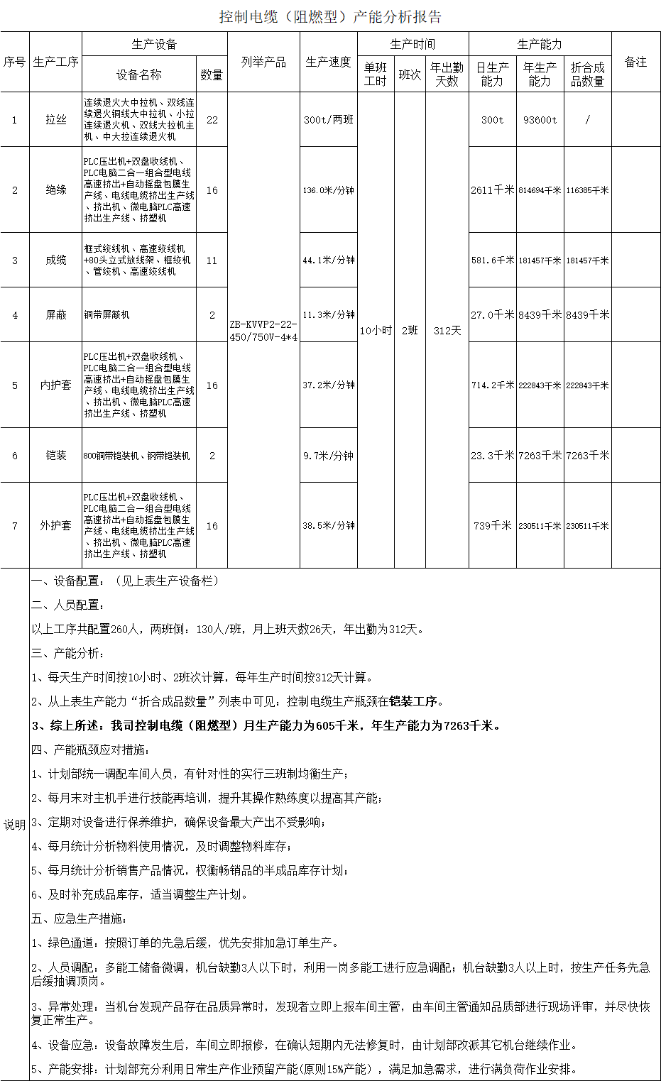 产能分析表以设备参数表为基准做。