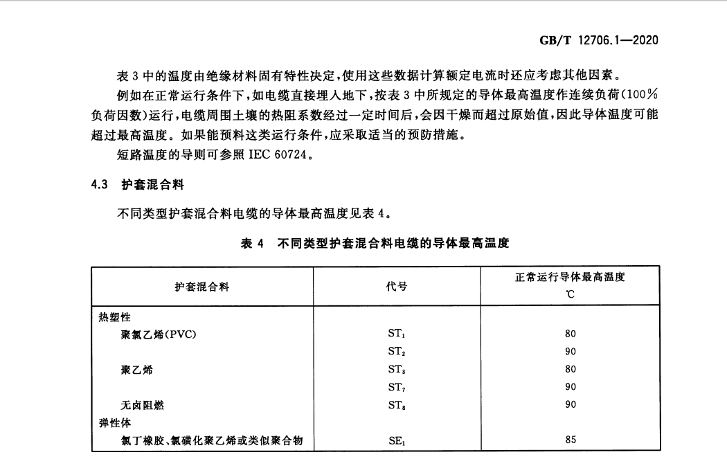 请问各位大佬:GB/T 12706.1-2020标准表4中PVC护套代号有ST1和ST2两种,请问如何确定哪些型号电缆的护套是用ST1料?哪些型号的电缆护套是用ST2料?PE料也是如此,有ST3和ST7两种。