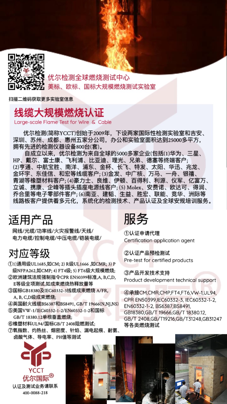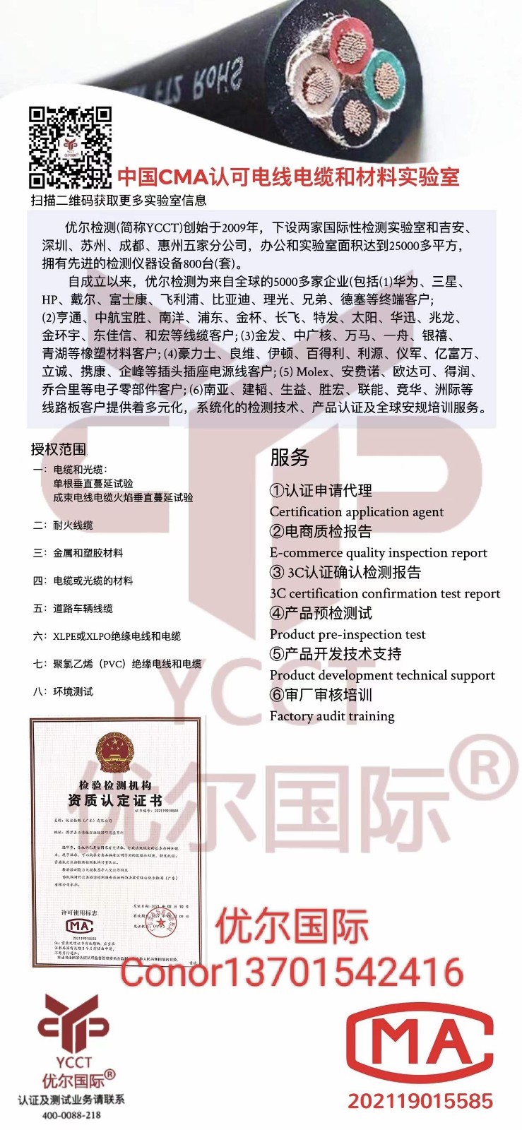 氙弧灯老化、UV紫外灯老化、碳弧灯老化、3000小时长期老化或耐热性(1A,1B,1C)或耐热试验2、空气弹老化、氧弹老化、耐臭氧老化、湿热老化、恒温恒湿、双85、双95、恒定湿热、交变湿热、高低温循环、高低温冲击、盐雾试验、耐油、材料析出、耐酸液、耐碱液、耐水解、耐燃料(汽油、柴油)和汽车线缆耐化学液液体相容性测试、IP防尘防水、热过载(48小时+)、200C度及以上老化