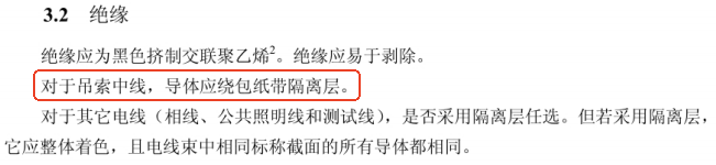 向各位大佬请教几个问题:①吊索中线,导体应绕包纸带隔离层,这个纸带,任意包带都可以吗?②成品性能,绝缘在吊索中线导体上的附着力,这个试验第一次见,普通挤管式能满足吗?有没有大佬做过相关试验,还是得挤压的,还是更高的其他挤出方式?③这个捆绑架空,首尾段一般拿什么扎紧的?还是每过一段就扎紧一次?④这个吊索中线,绞合时候,是专门放在中心作为支撑,还是可以随其他线芯一起绞合。