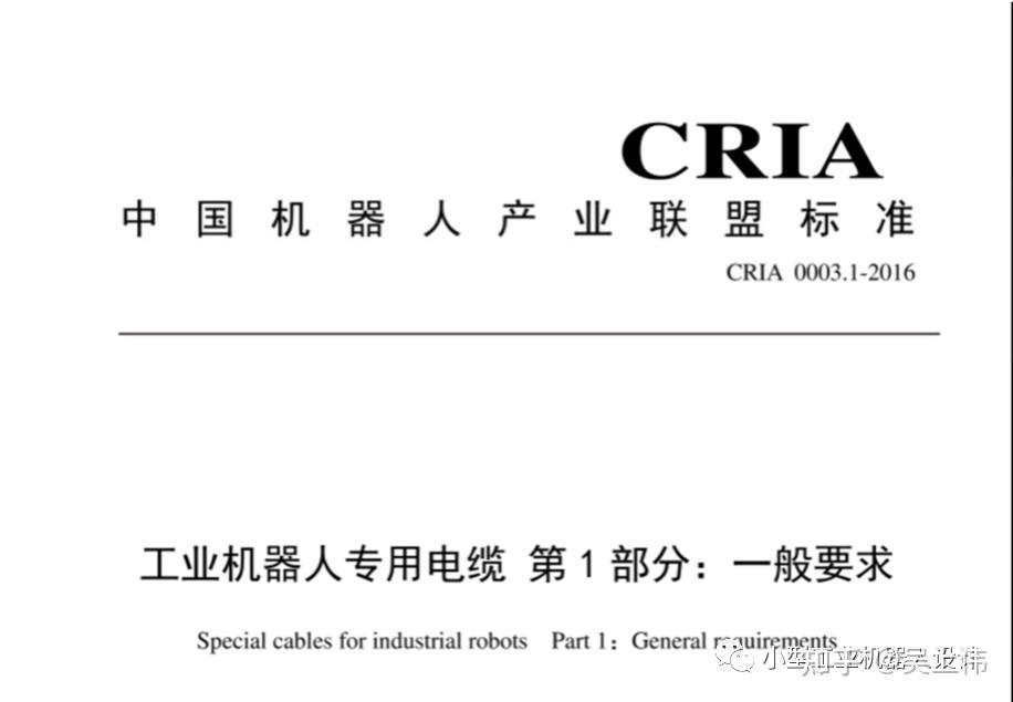 2、中国机器人产业联盟在2016年发布的 CRIA 0003-2016《工业机器人专用电缆》,这个标准是TUV的相似,这个很好理解,本来TUV也是起草单位之一。