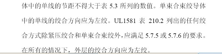 UL758:束绞单线绞向为左绞,复合绞最外层导体绞向为左绞