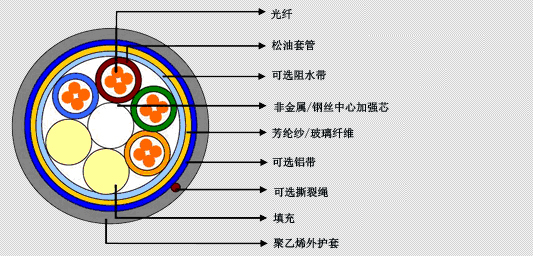 低烟有卤电缆,可以于任何光缆,无论是单模和多模,缓冲式或束紧式松管均可采用。衰减值最低为0.4分贝/公里,带宽高速1000兆赫/公里。