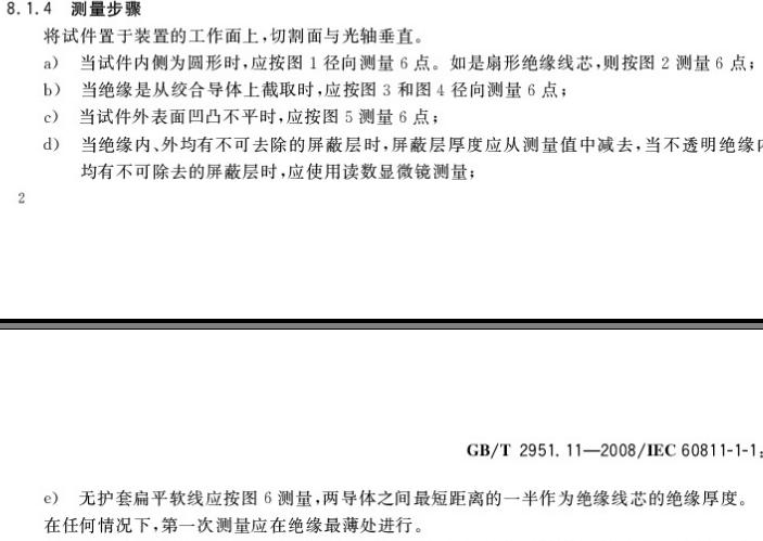 2951之8.1.4,在任何情况下,第一次测量应在绝缘最薄处进行测量 - 无图版