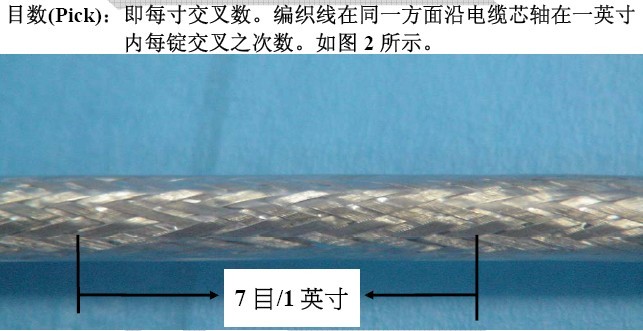 就是屏蔽层同一水平面,一英寸内有多少个编织交叉点 ,称之为多少目