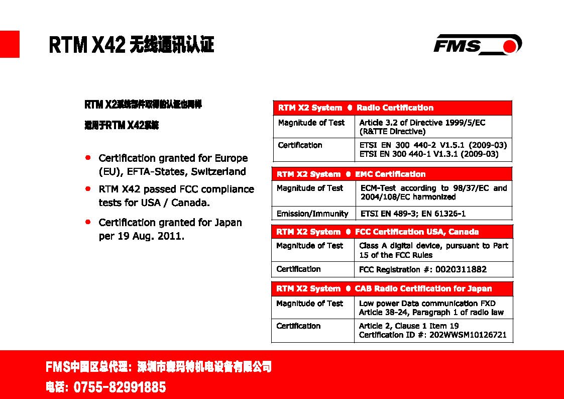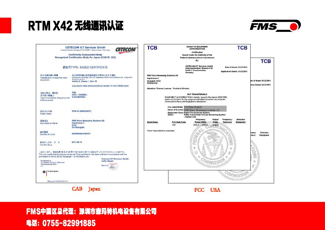 关于连接稳定性的问题——瑞士FMS无线蓝牙RTM系统采用的是工业蓝牙信号,都是采用点对点配对联结信号传送,可以有效防止无线信号(WiFi、手机蓝牙、手机通话信号)对其产生的干扰,类似测试实验FMS工程师曾在展会上给参展观众做过实地信号干扰测试。FMS传感器相关无线蓝牙联结稳定性也做过专业权威认证,如有需要认证证书可以向我司索取——深圳森玛特苏先生13590222934/QQ;373296827