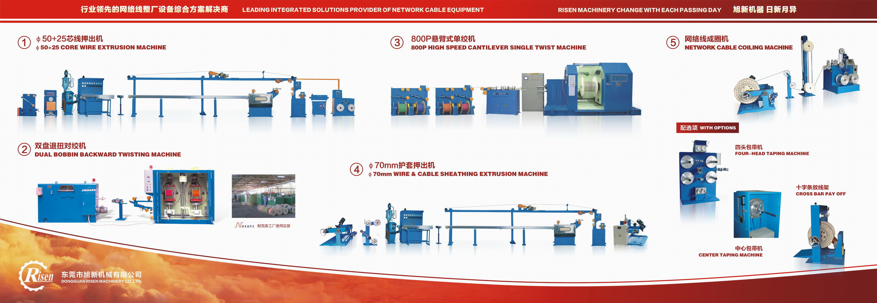 东莞市旭新机械有限公司(原虎门日新电线机械厂)始创于2001年,位于国际制造业基地—东莞市虎门镇。十几年来本公司一直致力于专业设计、制造数据电缆(网络线)设备。
