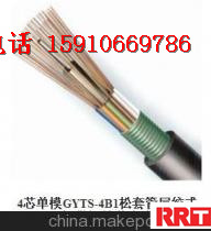 GYTS光缆的结构是将单模或多模光纤套入由高模量的塑料做成的松套管中,套管内填充阻水化合物。 缆芯的中心是一根金属加强芯,对于某些芯数的光缆来说,金属加强芯外还需挤上一层聚乙烯,松套管(和填充绳)围绕中心加强芯绞合成紧凑和圆形的缆芯,缆芯内的缝隙充以阻水填充物。双面涂塑钢带(PSP)纵包后聚乙烯外护套成缆。