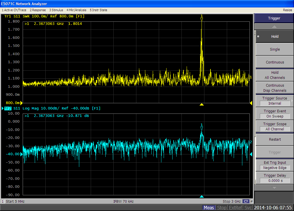 看了看,3G内的峰一般在1.25内,估计生产设备一般,唯独高点在2990MHz,查一下编织节距,不难解决。