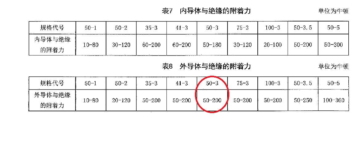 请问大神们是如何理解图5中测试标准的。编织体与芯线绝缘的拉拔力(剥掉编织层?),还是护套和编织体的拉拔力?请指教,谢谢。