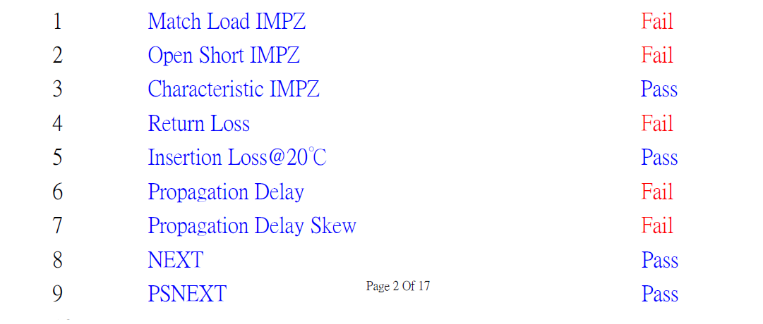 电线电缆网 > 通讯电缆 > CAT5e测试回波损耗、传播延时高频NG(完整版)