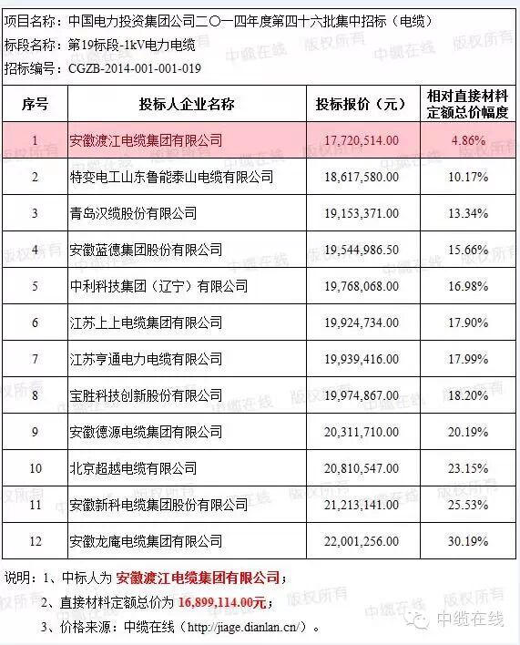 中缆在线近日推出《中国电力投资集团公司电缆供应商投标报价与利润分析(2014年度)》,涉及中电投2014年度所有3个批次打捆招标的105个标段854份报价的详尽分析。有兴趣或拟进军中电投市场的朋友赶紧点击下方“阅读原文”去围观吧!