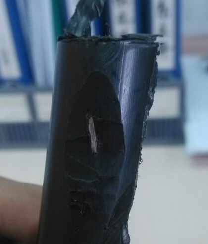 我知道现在多数生产厂家是不做10kv架空绝缘电缆的浸水耐压试验的,所以在这个论坛里也找不到相关的帖子。因为我厂要求每一盘10kv及以上架空绝缘电缆都要进行浸水耐压试验,一番试验下来,击穿率约在5%左右,多数击穿点中发现暗黄色的杂质,有时是白色的(附图),我们对此先前已经,加密了滤网,也严格规定了滤网的使用时间不得超过24小时,每周拆螺杆清理一次,包括加料的管道和料筒都清理,但仍然有这种物质引起的击穿,这种物质存在于绝缘层中。我们用的是硅烷一步法交联料,螺杆是不等距不等深的,我想问问各位遇到过这种情况吗?具体是什么原因呢,是料中本身含有的成分?还是由于预交联引起的呢?具体有什么好的解决方式吗?