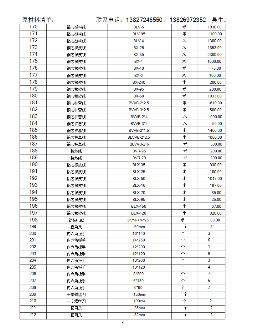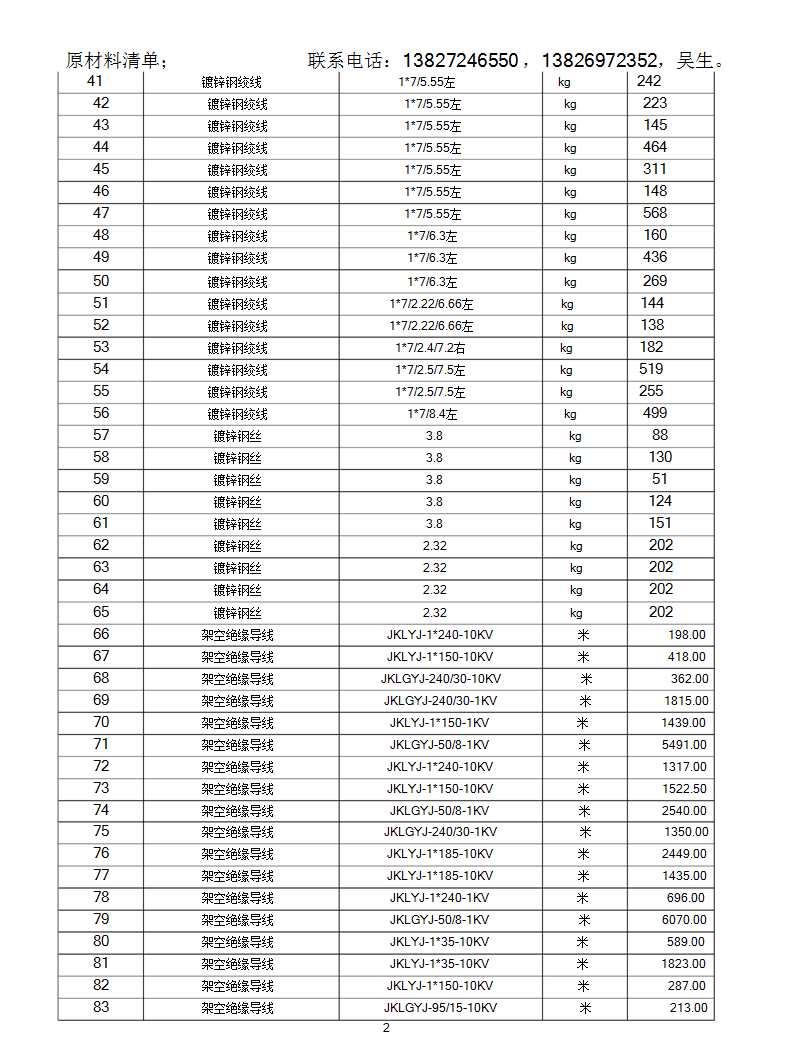电缆整厂设备销售,附设备,材料清单。 - 无图版