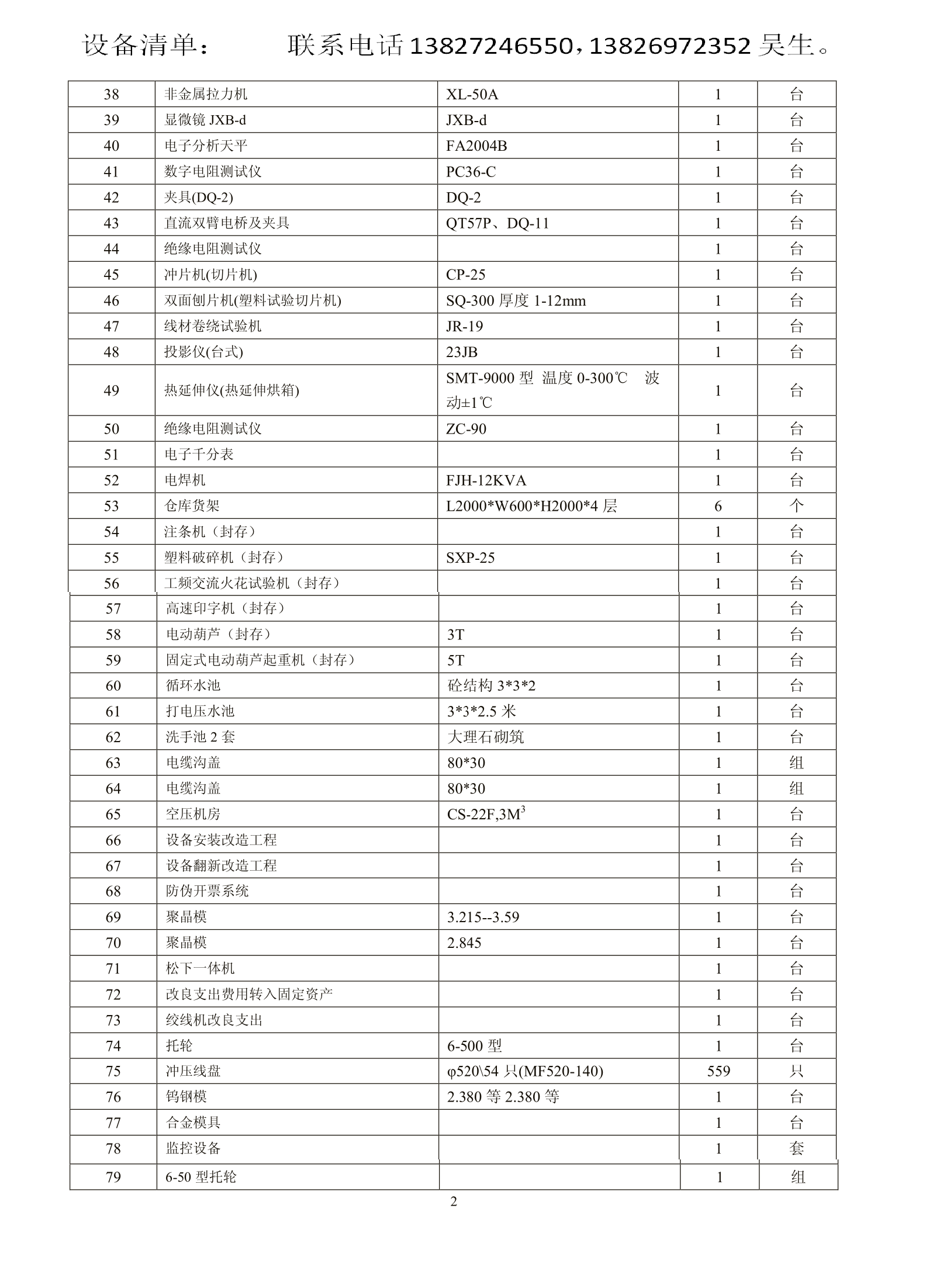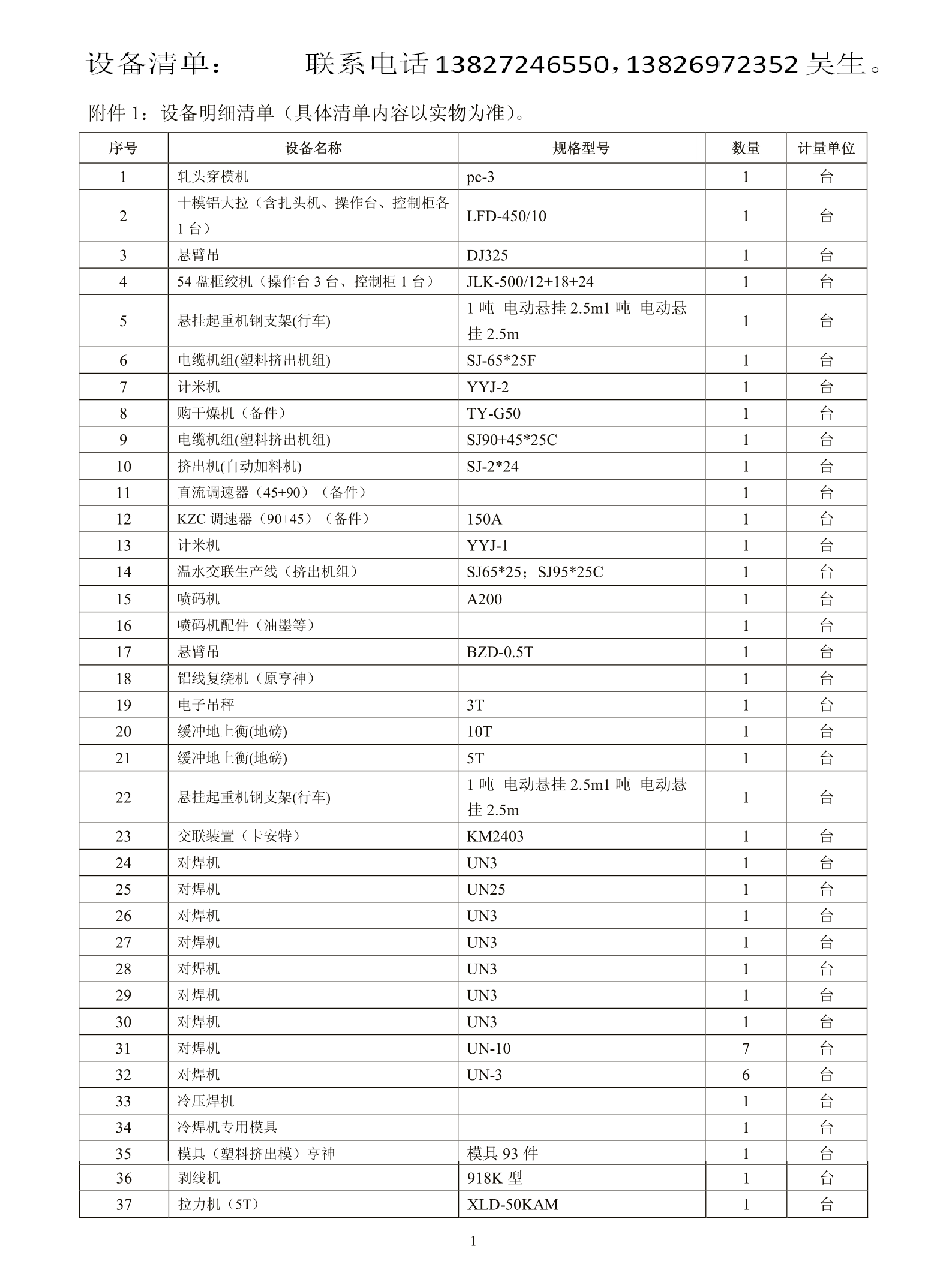 电线电缆网 > 供求信息 > 电缆整厂设备销售,附设备,材料清单。(完整版)