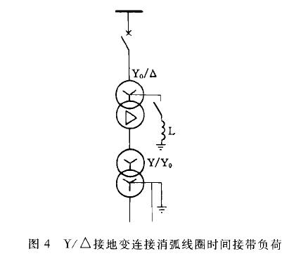 直接带二次负荷。如果将它使用在变电站,则可兼作站用变,起一变多功能作用。而Y/△的Y0/△/Y0型接地变在用于连接消弧线圈的同时,也可通过中间变压器带二次负荷,如图4所示。因此,选择接地变是否需要带二次负荷也是它的一个方面。