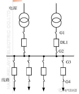 单母线接线的特点是电源和供电线路都连接在同一组母线上。为了便于投入或切除任何一条进、出线,在每条引线上都装有可以在各种运行工况下开断或接通电路的断路器(如图1中的DL1)。当需要检修断路器而又保证其他线路正常供电时,在每个断路器的两侧装设隔离开关(G1~G4)。隔离开关的作用只是保证检修断路器时和其他带电部分隔离,而不能用来切除电路中的电流。由于断路器具有灭弧装置,而隔离开关没有,所以在操作时,隔离开关应遵循“先通后断”的原则:接通电路时,应先合上隔离开关;而后合上断路器;开断电路时,应先断开断路器,而后断开隔离开关。此外,隔离开关可在等电位状态下进行操作。