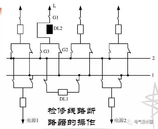双母线接线的最重要操作是切换母线。下面以检修工作母线和出线断路器为例来说明其操作步骤。