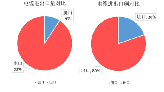 根据公开资料显示,2017年中国电线电缆的进口总量为24.6万吨,而出口总量为241万吨,出口量是进口量的10倍左右,因此电缆市场上,我国是绝对的顺差。但是细看数据显示,进口电缆总额为5057055千美元,出口电缆总额为20680728千美元,出口额仅为进口额的四倍。究其原因,主要是中国电缆市场95%为中小企业,由于其技术工艺等原因,产出的电缆主要用作一些低端用途,而高端产品往往依赖于进口。因此,受制于贸易摩擦,大多数中小企业扎堆的电缆之乡,由于其产品相对比较低端,缺乏不可替代性,得不到美国的订单,也不无意外。