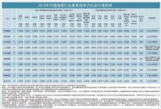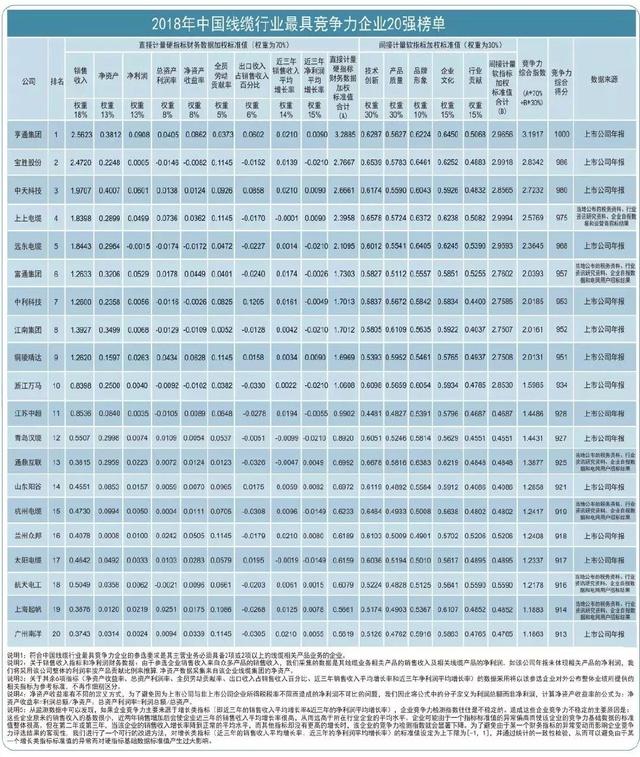 《2018年中国线缆产业100强》名单评选结果清晰显示全国线缆企业竞争力态势。从整体的竞争力表现来看,线缆行业整体竞争力表现比较平稳。优势企业的基础竞争力(直接计量硬指标财务数据)得分在相关子行业总排名的位次得到进一步巩固,亨通、宝胜、中天、上上、远东、富通等企业仍然保持领先。从2018年线缆各个企业的基础竞争力及各项得分来看,企业分化仍然十分明显。竞争力得分靠后的企业在相关子行业中的地位较上年进一步降低,呈现“强者恒强,弱者更弱”的态势。