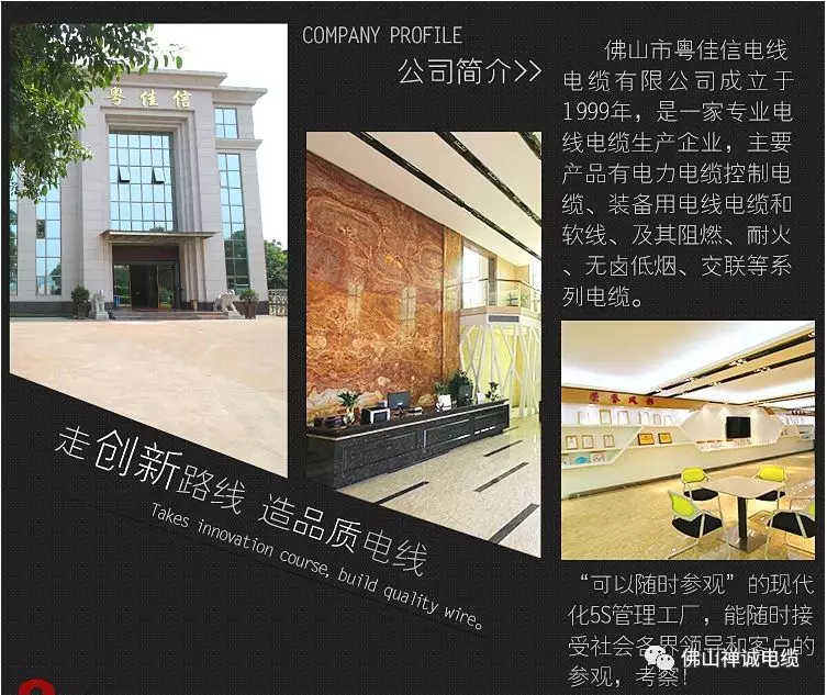 佛山市粤佳信电线电缆有限公司一直致力于电线电缆产品的研发、生产、销售和服务,经过多年的发展和产品结构的调整,公司已逐渐发展成为区域性的电线电缆龙头企业和国内领先的电缆企业。勤劳,诚信,实干是公司一直秉持的精神,专业高效是我们团队努力的方向。让禅诚品牌进驻各大行业系统,把禅诚电缆销往全国各地是我们永恒的目标。