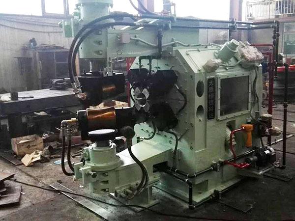 打头能力: 设备******捶打能力为100T(980KN)。可在钢管热和冷两种状态下进行打头,热打是指将钢管加热到650℃~800℃左右的状态下进行打头,或利用穿孔完成后钢管余热进行在线打头。冷打指在钢管壁厚4mm以下进行常温下打头。打头尺寸根据更换模具来调整,每副模具打出的头子尺寸为固定尺寸。捶打能力可根据公式进行计算得出,热打前的钢管直径为φ40—φ114mm。