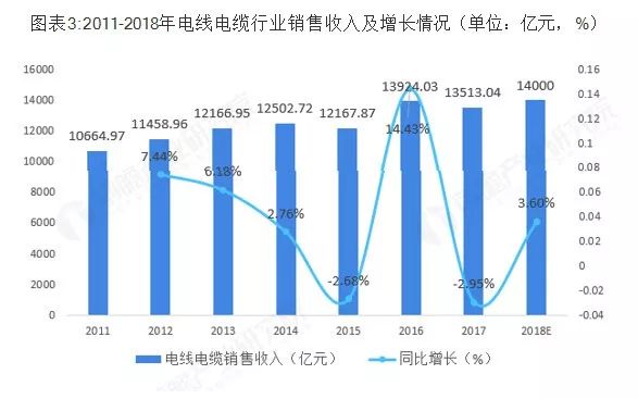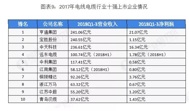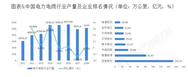 电线电缆产业简介:覆盖范围广,参与企业多 ——从产业链角度来看,电线电缆产业上游主要为提供制造电线电缆产品原材料的基础材料行业,如铜、铝及其合金;制造交联绝缘套及护套料的橡胶行业,聚乙烯、聚氯乙烯化工行业等;中游包括提供电力电缆、通信电缆、电气装备用电缆及裸电线、绕组线等其他类型电缆的电线电缆生产制造企业;下游主要为对电线电缆有需求的行业,如工程机械、通信行业、电力行业及建筑行业等。 ——从企业来看,上游涉及到以铜、铝及其合金的金属材料企业,橡胶及其制成品企业,研发聚乙烯、聚氯乙烯的化工企业;在电线电缆行业中,可以分为以不同种类电线电缆为主营业务的电线电缆研发制造企业。 市场规模:产品向高端转变,销售收入波动上升 ——政策频发助推行业市场规模发展 电线电缆制造业作为国民经济中最大的配套行业之一,其产品广泛应用于家电、电力、工程机械、通信以及石油化工等基础性产业,是现代经济和社会正常运转的保障。多年来,电线电缆行业随着国家产业政策的不断调整而逐步升级换代,从低端向中高端转换,相关领域得到国家政策的大力支持。 ——受益于国家层面政策支持及下游应用领域对电线电缆产品需求的增长,2011-2017年中国电线电缆行业销售收入总体波动上升,行业年均复合增长率为4.02%。至2017年行业销售收入为13513.04亿元,同比下降2.95%。 随着我国电线电缆行业的调整进入深化发展期,其过剩、劣质产能的淘汰虽然会对行业的整体市场规模有一定的影响,但是产品逐渐由电力电缆向特种电缆转变,在国内相关产业发展及对外一带一路发展战略的促进下,2018年我国电线电缆行业的销售收入实现小幅增加,超过14000亿元。 ——细分领域市场结构,电力线缆占据主流 从我国电线电缆行业细分领域市场结构来看,由于电力电缆的应用范围较广泛,该产品的收入规模占比较大,仍是行业重要的细分领域,但是随着节能环保发展理念的不断普及、下游应用领域对电线电缆提出特种需求等因素,电气装备用电缆所占比重不断上升。2017年,电力电缆占全部市场比重为35.73%,较2012年43.36%下降7.63个百分点;电器装备电缆占全部市场比重为19.96%,较2012年的15.23%上升4.73个百分点。 ——电力电缆产量波动较大,行业集中度较低 受我国近年来电源工程投资额下降以及电线电缆行业整体规模回落等因素影像,电力电缆行业所受影响较大。2017年随着行业落后产能的淘汰,产品不断向高端产品转移,全国电力电缆的产量出现较大幅度的下滑,为4933.60万公里,同比下降13.11%。 2018上半年,8家上市公司的电力电缆营业收入均在10亿元以上。2018上半年,智慧能源营业收入达81.67亿元,宝胜股份营业收入则高达152.77亿元,但在整个电力电缆行业中的市场份额也均不超过2%。 ——电气装备电缆前景良好,行业产值逐年上升 随着节能环保发展理念的不断普及,以“高能效、低损耗”为主要特征的高压、超高压电力电缆已被越来越多地应用于长距离、大跨度输电线路。高压、超高压电力电缆逐渐替代中低压电力电缆是行业发展的必然趋势。2011-2017年,电气装备电缆行业产值逐年上升,2017年,电气装备电缆行业产值达到3160.39亿元,同比上年增长4.73%。预计2018年行业产值将会达到3350亿元。 于高档次电气装备电缆存在较高的技术壁垒,我国现有电线电缆制造企业中,约有一半能够生产电气装备电缆,但能够提供高档次电气装备电缆的企业仅占现有电线电缆制造企业总数的1%,市场所需要的高档次电气装备电缆缺口很大,几乎全部依赖进口。 竞争格局:行业集中度偏低,重点区域为华东地区 ——中小型企业居多,CR10远低于发达国家水平 2011-2017年,我国电线电缆行业企业数量呈波动上升变化。2017年,我国电线电缆行业企业数量有10000余家,规模以上企业为4034家,较上年减少30家。 虽然我国电线电缆行业整体规模位居世界世界首位,但是产品主要是以中低端为主。中国的线缆企业对高端产生的研发及生产投入偏少,而基础性研究工作水平更是表现为较低,研发及过程控制水平较低,现代产品主要是以中低端为主,生产经营模式较为粗放,与国外现代巨头的差距较大。2017年我国排名前十名的线缆企业占全部市场份额不足10%,排名前20强的占全部市场份额不足12%,排名前100强的占全部市场份额约20%。这同发达国家产业高度集中的特点形成了鲜明对比。 2018年,中国电器工业协会电线电缆分会与线缆信息研究院联合推出中国电线电缆企业100强,通过对300余家优秀企业进行实地走访和调研,以企业财务数据、技术创新、产品质量、品牌形象、企业文化、行业贡献等为指标进行综合测算,结果显示全国线缆企业、线缆行业整体竞争力表现比较平稳,亨通、宝胜、中天、上上、远东、富通等企业仍然保持领先。企业分化仍然十分明显。竞争力得分靠后的企业在相关子行业中的地位较上年进一步降低,呈现“强者恒强,弱者更弱”的态势。(注:上上电缆、与富通集团为非上市企业,在本次评选中分别位列第4与第8位。) 发达国家的电线电缆行业经过多年发展,特别是面对原材料价格波动,小企业逐渐退出市场,产业集中度大幅提高:美国前10名线缆制造商(如通用、百通、康宁、南线等)占据了市场份额的70%左右;日本7大线缆企业(如古河、住友、滕仓、日立、昭和等)占